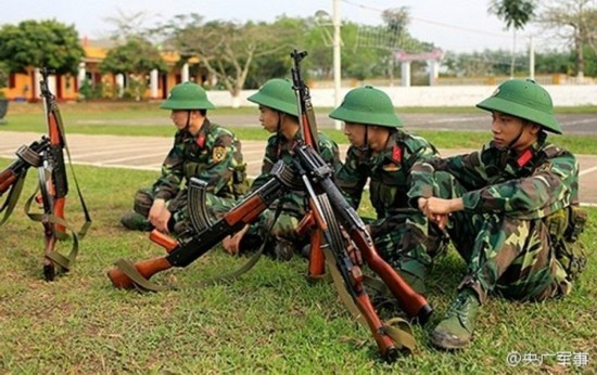 越军的新兵生活跟解放军新兵差不多。他们要学习射击(使用的崭新的56式步枪)、队列、内务、武器使用还有必不可少的政治教育。在宿舍照片中有一张叠好的军被图,看质量叠得还是不错的。