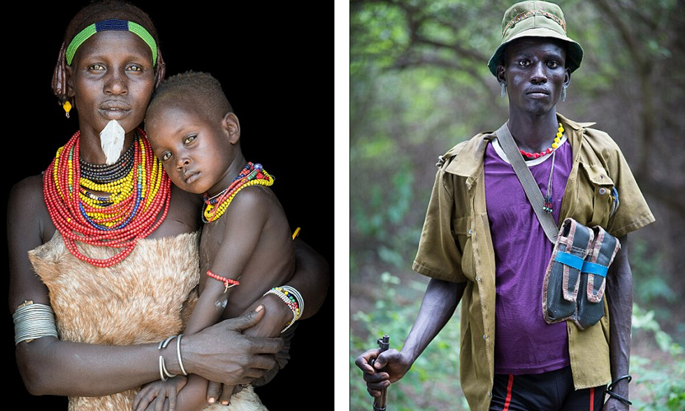 左图这位母亲和她的孩子来自埃塞俄比亚的Daasanach部落,右图中男子来自Nyangatom部落,他们以游牧为生,约有3万人。(网页截图)
