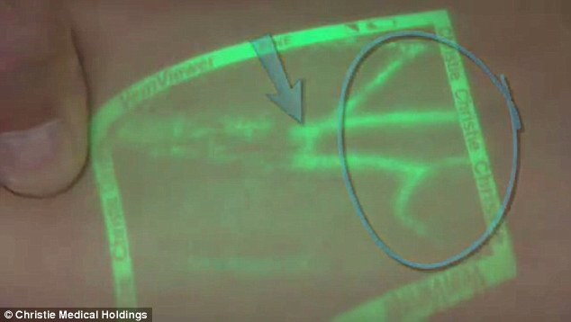 这种仪器是由位于美国孟菲斯的克里斯蒂医疗控股公司设计的,名为“克里斯蒂血管指示器”(Christie VeinViewer)。它可以检测出血管的位置,并将血管的分布图像实时投射到手臂上,以便让医护人员知道应该在哪里下针。设计公司表示:“这或许能让你免于遭受‘冤枉针’的痛苦。”