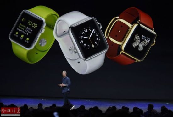 资料图片:在美国加利福尼亚州的丘珀蒂诺,苹果公司首席执行官蒂姆·库克介绍苹果手表。新华社发