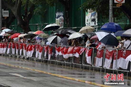 当地时间2015年3月29日,新加坡,民众冒雨在街头守候,等待已故前总理李光耀国葬举行。图片来源:CFP视觉中国