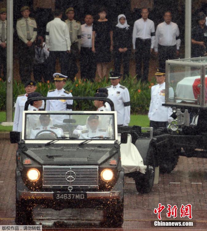 当地时间3月29日,新加坡建国总理李光耀的国葬仪式29日举行,移灵队已从国会大厦出发,前往举行国葬礼的新加坡国立大学文化中心。