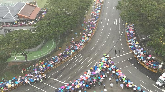 新加坡民众冒倾盆大雨沿线护送李光耀灵柩