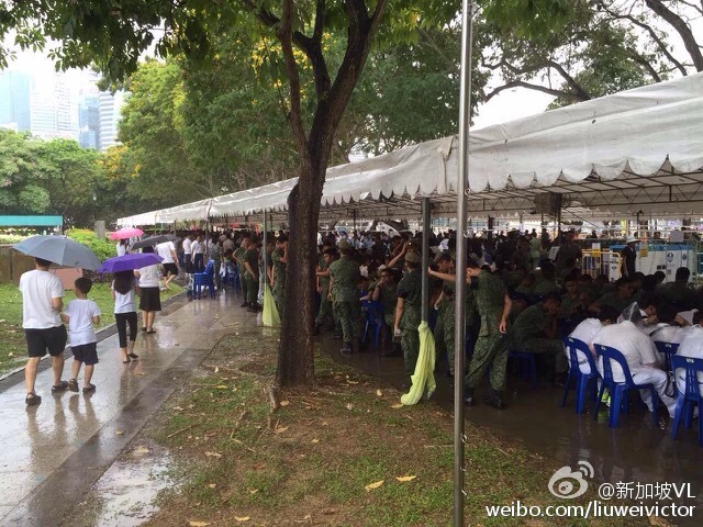 葬礼即将开始的时候新加坡举国出动,民众雨中排队为李光耀送行。