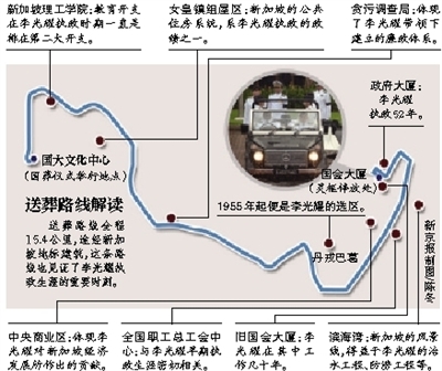 李光耀送葬行程为15.4公里,沿街站满冒雨送行的民众。