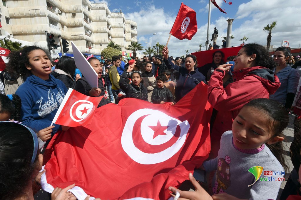 突尼斯首都数千民众进行反恐游行 多国政要出席【高清组图】