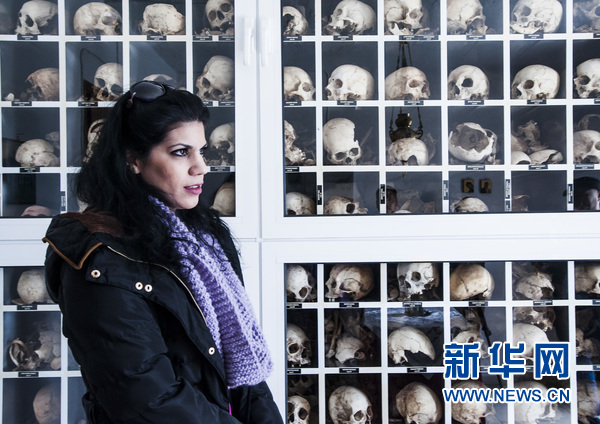 3月15日,迪斯托莫村文化协会主席帕帕尼古拉奥(Christos Papanikolaou)在展示受害者遗骸的纳粹大屠杀受难者合葬墓中,介绍这段惨痛历史。迪斯托莫村位于雅典西北约110公里处的希腊中部山区。第二次世界大战中,德国纳粹于1944年6月10日在这里屠杀了200多名村民,包括大量的妇女、儿童和老人。希腊最高法院2000年作出判决,要求德国对大屠杀受害者家属进行赔偿,但这一判决主要因为政治原因未能得到执行。希腊新任司法部长帕拉斯科沃普洛斯(Nikos Paraskevopoulos)近日表示,他准备签署有关文件,执行这一判决。这使迪斯托莫村大屠杀及战争赔偿问题,再度成为世人关注的焦点。新华社记者 刘咏秋摄