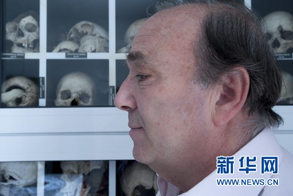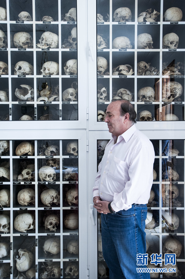 3月15日,迪斯托莫村村长卡斯特里蒂在展示受害者遗骸的纳粹大屠杀受难者合葬墓中,介绍这段惨痛历史。迪斯托莫村位于雅典西北约110公里处的希腊中部山区。第二次世界大战中,德国纳粹于1944年6月10日在这里屠杀了200多名村民,包括大量的妇女、儿童和老人。希腊最高法院2000年作出判决,要求德国对大屠杀受害者家属进行赔偿,但这一判决主要因为政治原因未能得到执行。希腊新任司法部长帕拉斯科沃普洛斯(Nikos Paraskevopoulos)近日表示,他准备签署有关文件,执行这一判决。这使迪斯托莫村大屠杀及战争赔偿问题,再度成为世人关注的焦点。新华社记者 刘咏秋摄