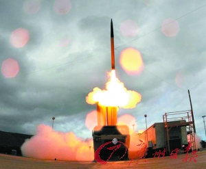 “萨德”反导系统是美国陆军研发的一款新式导弹拦截用导弹,属于国家导弹防御系统的加强一环,意图取代“爱国者”,发展一种更强的拦截能力,防御覆盖面更广大,命中率更高,并能够拦截平流层上的导弹。