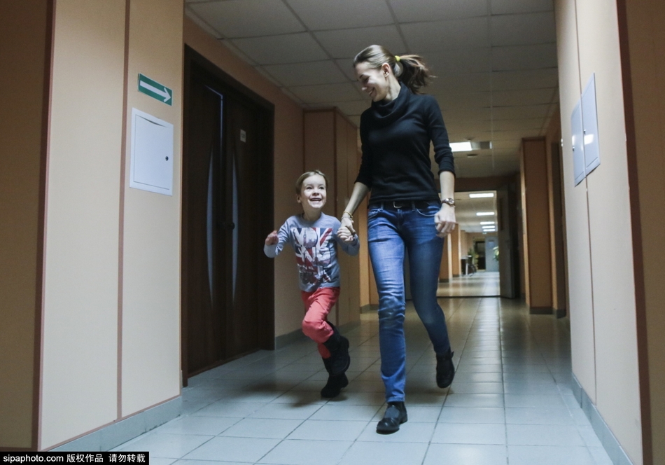 图为行为分析师Nadezhda Kondratyeva为自闭症儿童Alexander Bondar进行行为分析治疗。