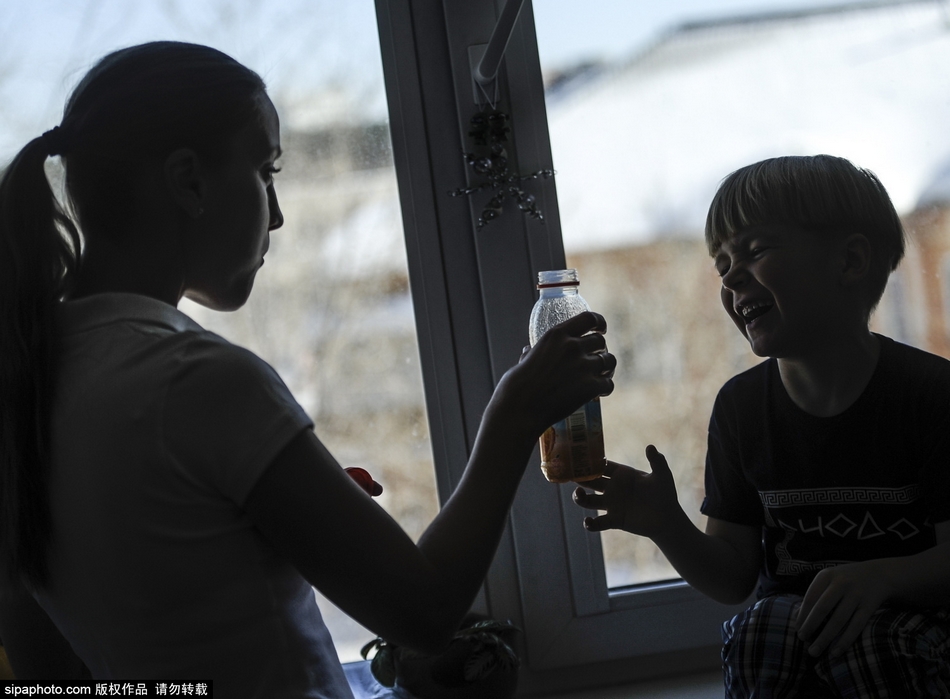 图为自闭症儿童Alexander Bondar和他的母亲Natalya。