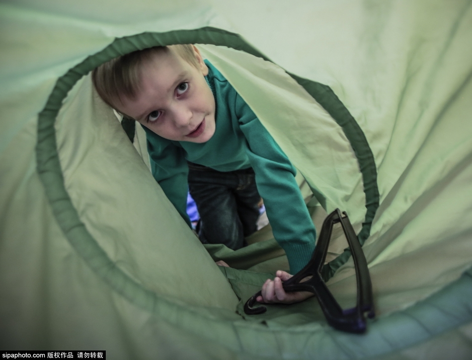 图为自闭症儿童Vladimir Sorokin在玩耍。