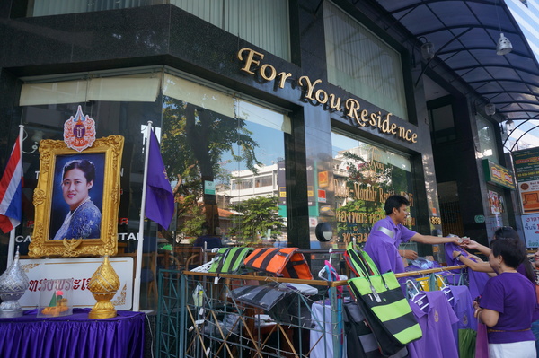 新华网曼谷4月2日电(记者李颖)4月2日曼谷,诗琳通公主的紫色画像、旗帜在各个政府部门、机构组织、学校高高挂起迎风飘扬,街头忙碌的人们多穿着浅紫深紫的T恤,上面印着公主的徽章。爱美的少女们一件件粉色紫衣,搭配上牛仔裤、学生裙、泰式筒裙,更是成为点缀在紫色海洋里的一道道亮丽风景。