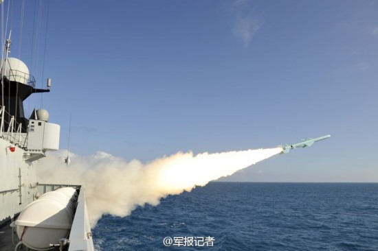 原标题:军媒发054A舰猛照:犁浪航行射反舰导弹