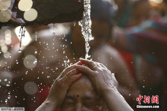 原标题:尼泊尔印度教信徒沐浴圣浴 庆祝传统节日