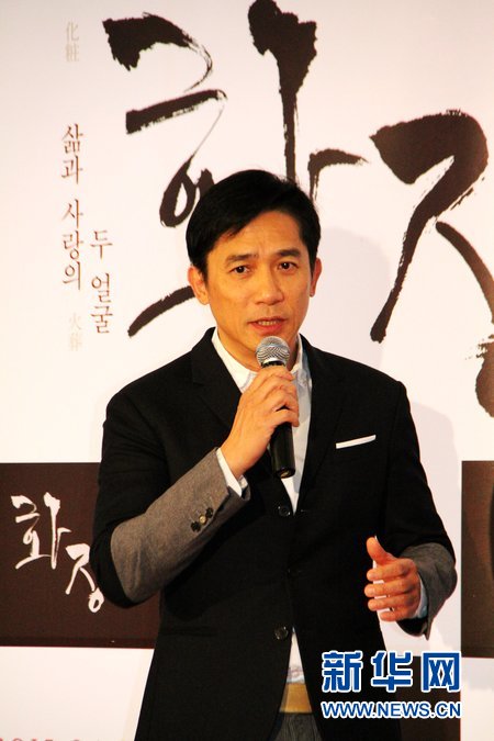 6日,梁朝伟出席在首尔举行的韩国电影《化妆,火葬》VIP试映会。(新华网记者 彭茜 摄)