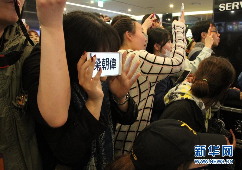 6日,韩国电影《化妆,火葬》VIP试映会上的梁朝伟影迷。(新华网记者 彭茜 摄)