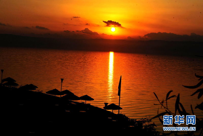 五彩迷人的死海日落。(新华网记者 程春香 摄)