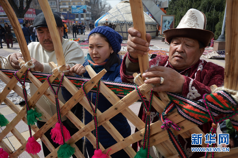 4月4日、5日,在阿拉木图举办首界毡房节。穿着民族服装的民间艺人搭起具有悠久传统的哈萨克毡房。毡房上部为穹形,下部为圆柱形,四壁有网状的木杆搭成整个毡房的骨架,外包白毡。毡房里四周是挂毯,地上是花毡地毯,上面刺着各种图案,令人赏心悦目。哈萨克斯坦举办这次活动是为了将哈萨克毡房列入世界非物质文化遗产名录。(文/卢敬利 图/叶莲娜)