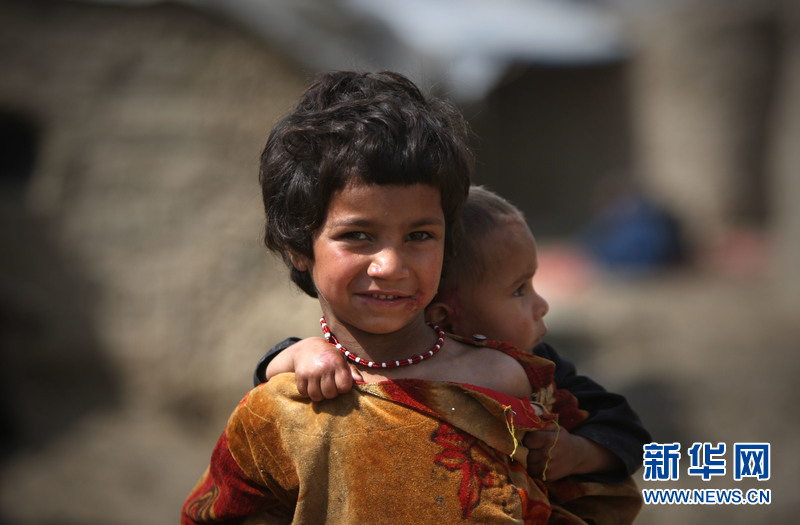 带着弟弟玩耍的阿富汗儿童。(艾哈迈德·马苏德 摄)