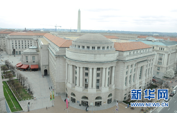 4月7日,在美国首都华盛顿宾夕法尼亚大楼上俯瞰华盛顿市区。美国首都华盛顿7日突发大范围停电,白宫、国会和国务院等机构受到波及。有消息人士说,停电因波托马克电力公司位于马里兰州查尔斯县南部的一座发电厂发生爆炸所致。新华社记者鲍丹丹摄