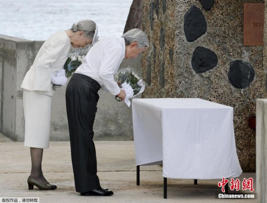 日本天皇夫妇访问帕劳 鞠躬献花纪念二战阵亡者