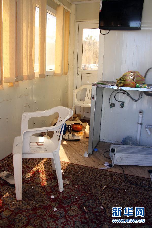 这是4月12日在利比亚首都的黎波里拍摄的遭到袭击后的韩国驻利比亚大使馆。利比亚安全部门消息人士12日说,韩国驻利比亚大使馆当天遭到武装袭击,两名守卫大使馆的安全人员被打死。 新华社发(哈姆扎·图尔基亚摄)