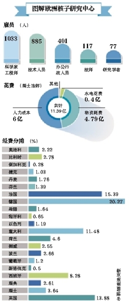 如此花费众多的资金通过什么渠道得来?玛索里耶表示,欧洲核子研究中心是一个国际组织,预算来自21个成员国,这些成员国按比例承担预算,以2014年11亿瑞士法郎预算为例,德法占最大比例,其次是英国和意大利。