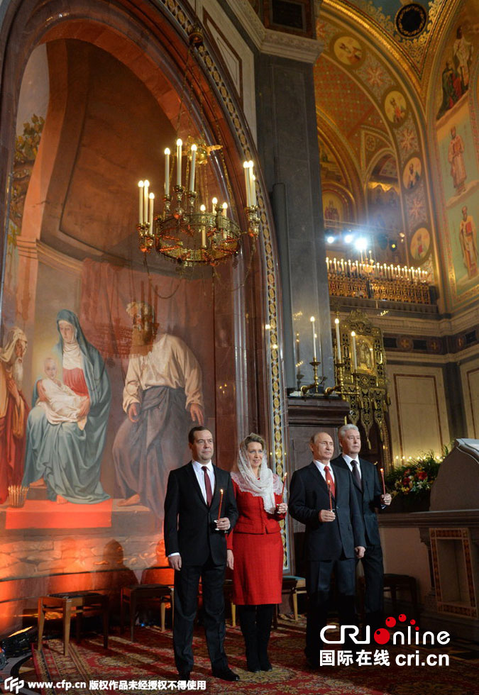 俄总统与总理出席东正教复活节宗教仪式(高清组图)