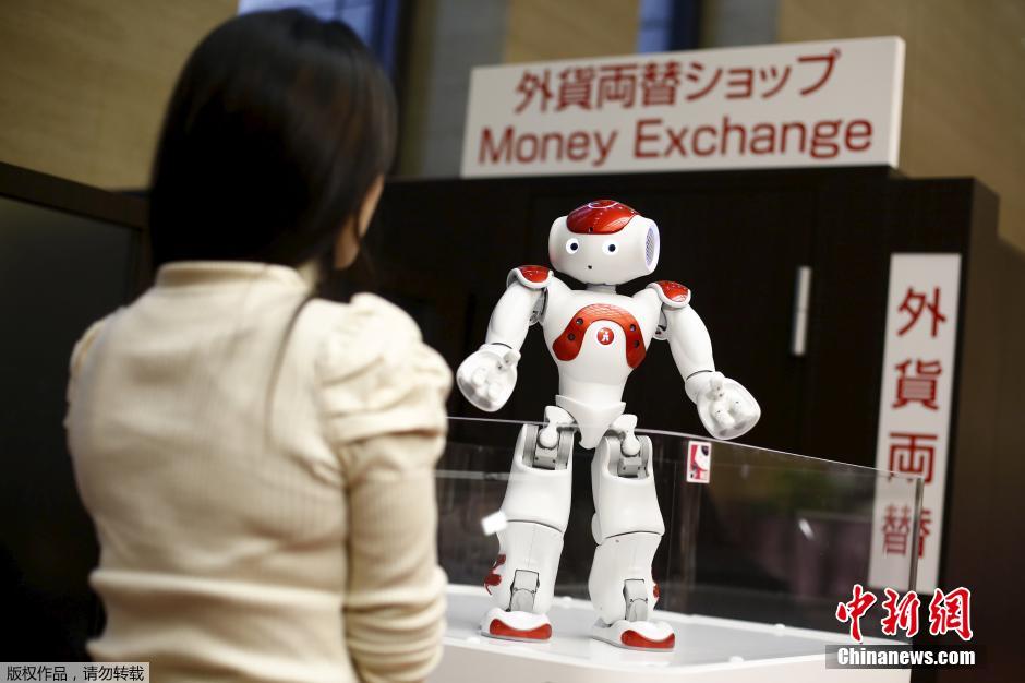 4月13日,在日本东京的一家银行内,一个名为“Nao”的机器人为储户服务,提供实用信息。