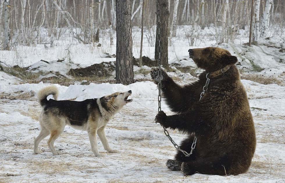 俄猎熊犬技能大赛:棕熊被锁树下经受猎犬撕咬(高清组图)