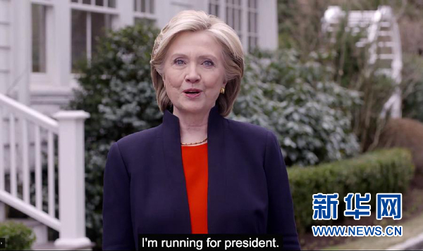 美国当地时间4月12日,希拉里·克林顿推出时长2分18秒的竞选视频,正式宣布角逐2016年美国总统竞选。