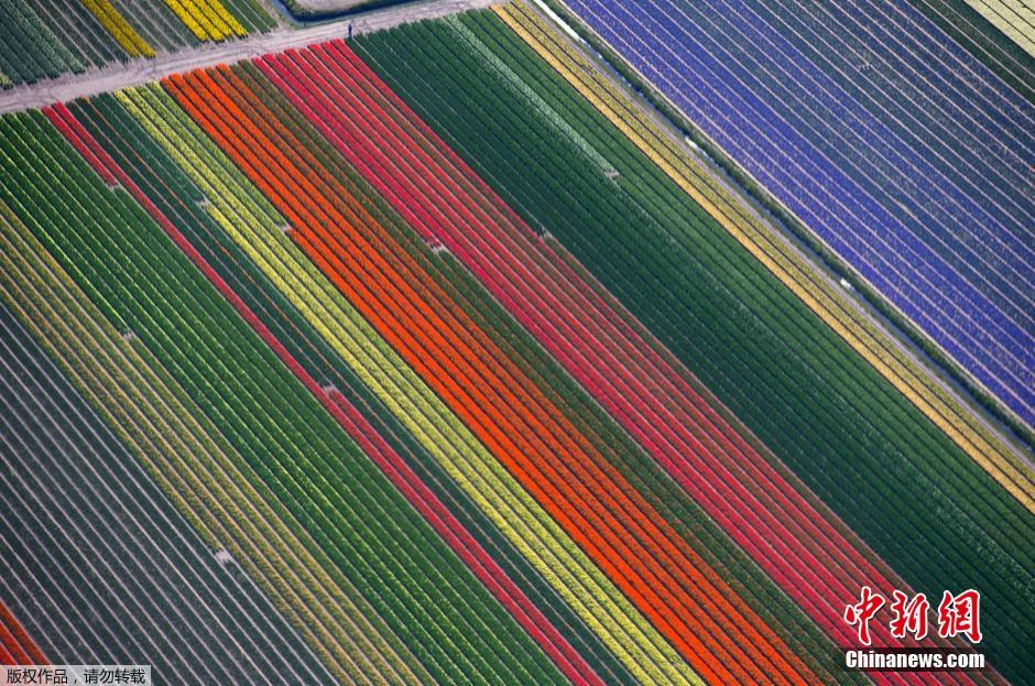 航拍世界最大郁金香田 似彩色地毯美不胜收【高清组图】