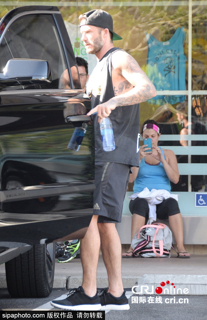 贝克汉姆穿运动背心出街秀健硕手臂(图)