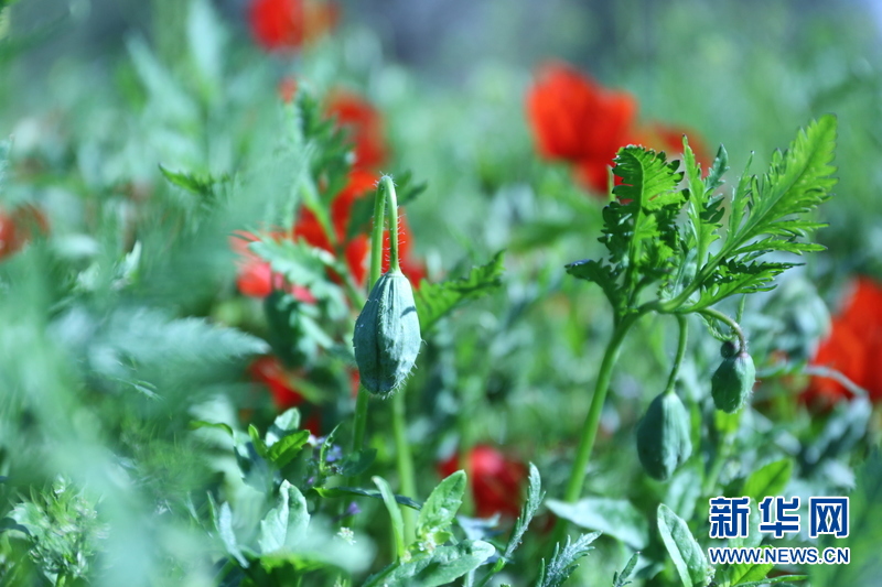 红罂粟含苞待放 新华网发 记者卢敬利 摄