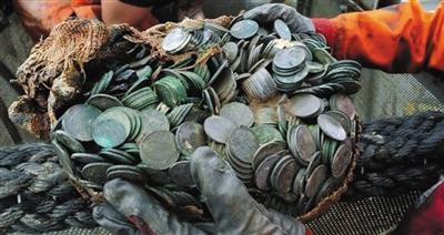 大西洋5000多米深处打捞创纪录;船上原载约100吨英财政部银币;捞出的银币归还英政府,打捞公司获提成