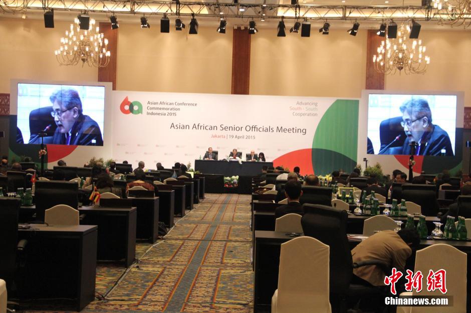 4月19日,主题为“加强南南合作,促进世界和平”的纪念亚非会议60周年政府高官会议在雅加达国际会议中心开幕。中新社发 顾时宏 摄