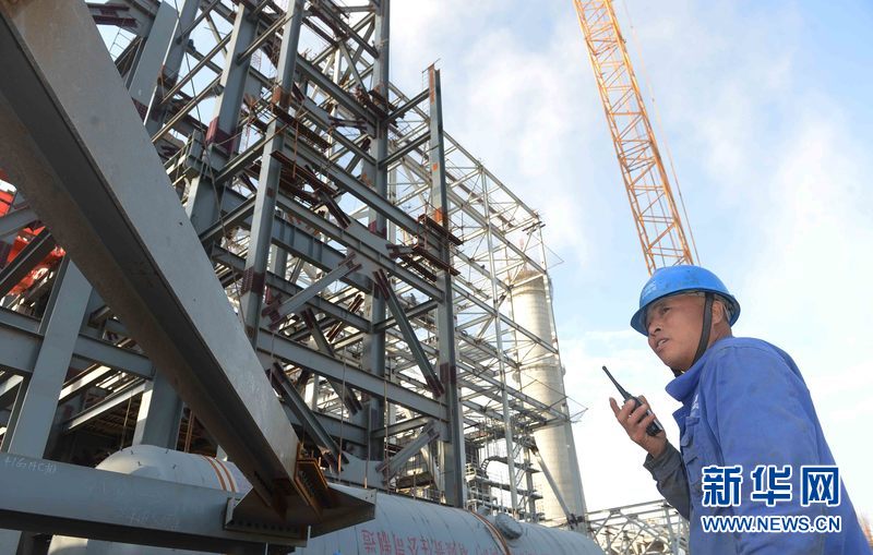 4月16日,乌兹别克斯坦安格连(市)电厂主厂房钢结构施工现场。新华网发 记者沙达提 摄