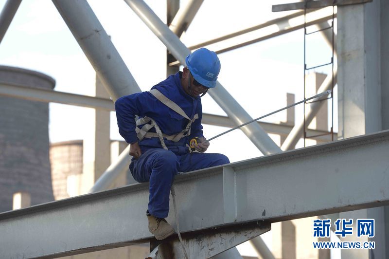 乌兹别克斯坦安格连(市)电厂主厂房钢结构施工现场。新华网发 记者沙达提 摄