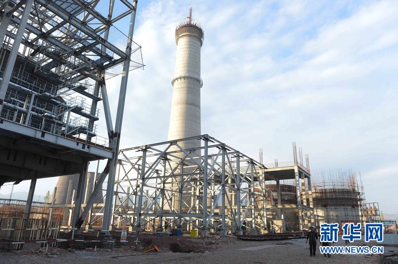 乌兹别克斯坦安格连(市)电厂主厂房钢结构施工现场。新华网发 记者沙达提 摄