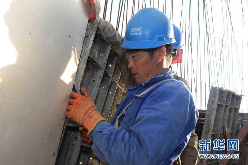 4月16日,乌兹别克斯坦安格连(市)电厂主厂房钢结构施工现场。新华网发 记者沙达提 摄