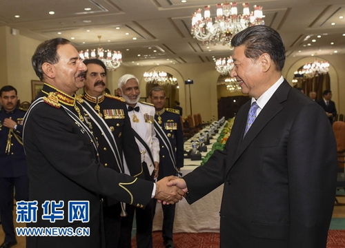 当地时间4月20日,国家主席习近平在伊斯兰堡会见巴基斯坦参联会主席马哈茂德、陆军参谋长谢里夫、海军参谋长扎考拉、空军参谋长阿曼等军方领导人。