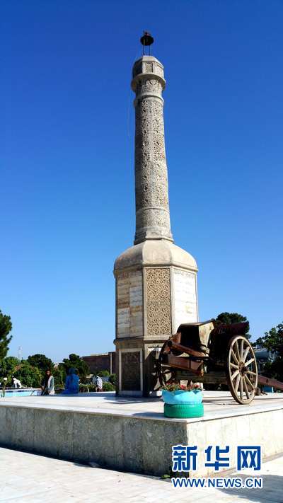 清真寺里面的宣礼塔,下面居然还摆放着一尊大炮。(新华网记者 赵乙深 摄)