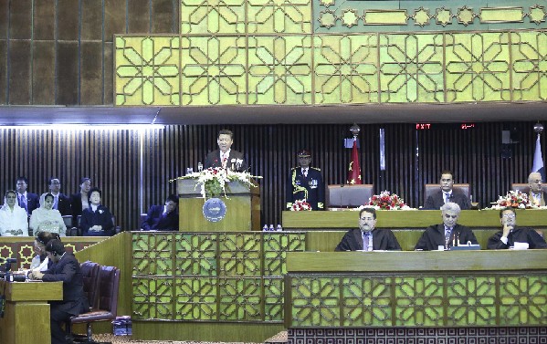 此次习主席首访巴基斯坦,便应邀在议会两院发表演讲。演讲中,议员们不时用他们传统的手掌拍击桌面的方式表示尊敬和赞同。