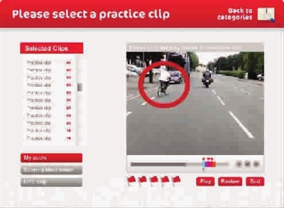 ■ 英国驾照理论考试中有一项视频考试,要求考生圈出模拟驾驶录像中涉及危险驾驶的地方。图为模拟考试界面截屏 图GJ