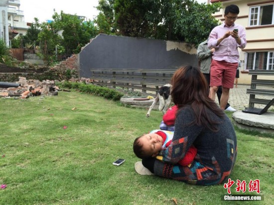 当地时间4月25日中午12时许,中新网记者在尼泊尔首都加德满都感受到强烈地震。当时记者正在就餐,在跑出楼房时,身边一堵墙被震塌。周围大批居民奔跑到空旷地带,狗叫声四起,手机信号中断。记者发稿时震感仍在持续,附近一家中资企业的有线网络尚未中断。中新社记者 符永康 摄