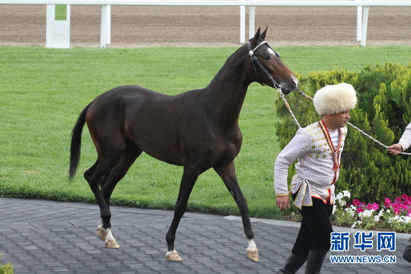 新华网阿什哈巴德4月24日电(记者卢敬利)2015年阿哈尔捷金马(汗血马)选美大赛今天在土库曼斯坦首都近郊的总统阿哈尔捷金马场隆重举行。