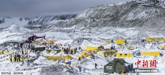 原标题:实拍珠峰南部登山大本营救援现场(组图)