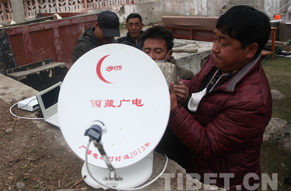 大卓嘎这一愿望在28日得到了实现,在安置点院内,记者看到日喀则市广播电视局的工作人员正在安置点安装卫星地面接收器恢复广播电视信号供安置点群众集体观看收听广播电视。