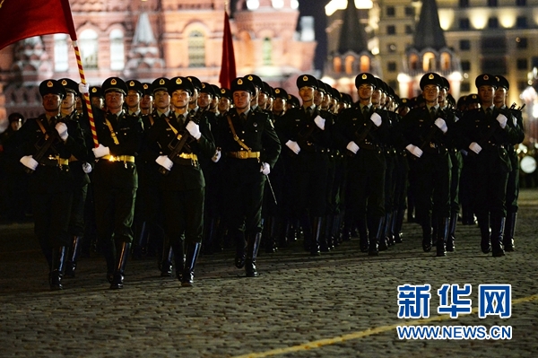 耿雁生:经习主席和中央军委批准,由中国人民解放军三军仪仗队抽组的112人方队已于4月25日启程,前往莫斯科参加俄纪念卫国战争胜利70周年阅兵活动。近日,中方方队开展了适应性训练,并与俄方举行了合练,5月9日将参加在莫斯科红场举行的阅兵式和分列式。